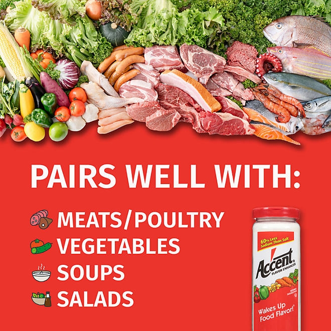 Season your food like a professional chef with Ac’cent Flavor Enhancer. It will liven up the spices in all kinds of foods from meats to salads. As a food enhancer, it will enrich, but will not cover up the taste of your meat or vegetables. Offering a savory, broth-like taste, it is a popular seasoning for soups, stews and casseroles.