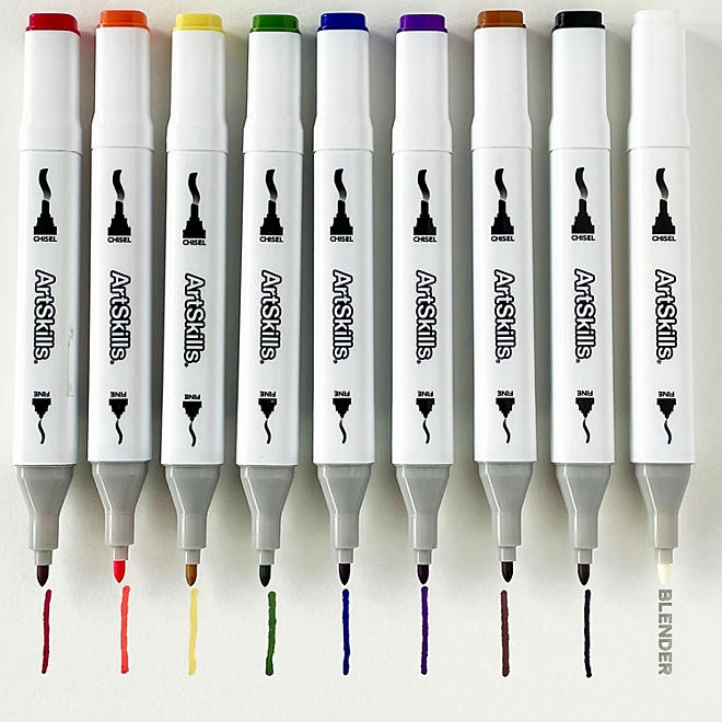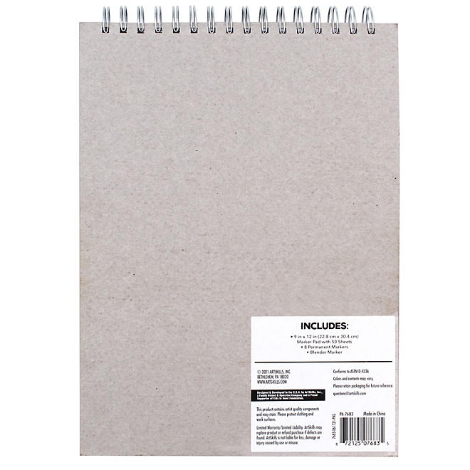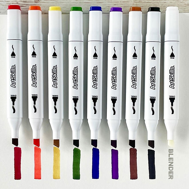 ArtSkills Marker Essentials and Paper Art Set has everything you need to explore drawing and coloring. This Art Set includes 8 dual -tipped color markers, 1 dual-tipped blender marker and a marker drawing pad. You’ll love our ArtSkills Artist Marker Art Set. This fun art kit includes 8 Dual-Tip Alcohol-Based Markers, Marker Paper Notepad, and a Color Blender Tool. This creative Art Set includes everything you need to create beautiful blended marker drawings and illustrations. With permanent, alcohol-based Art Markers, you can draw with vibrant color and create gradient effects. Acid-free art pad has 50 sheets of thick sturdy 150GSM paper. Makes a great gift for both kids and adults, beginner and intermediate artists.
