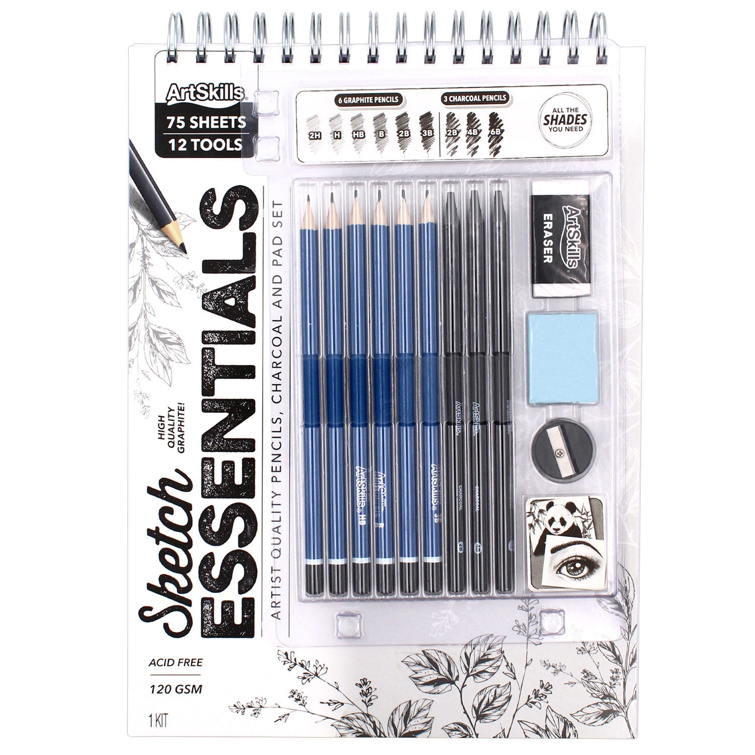 This Artist set has everything you need to learn to draw and sketch. ArtSkills Art Set is great for beginner artists. This Drawing Set has everything you need to learn to draw and sketch. Paper and Pencil Set has artist-quality Graphite Pencils and Charcoals. Pencils and Charcoals are a great medium to help new artists learn to draw fine lines and shading techniques. Our Drawing Kit also includes a 9″ x 12″ Sketchpad, Eraser and Pencil Sharpener. Sketchpad has 75 sheets of acid-free paper. This set makes a creative gift for both adults and kids!