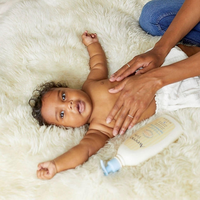Aveeno Baby Daily Moisture Body Lotion is a nourishing, non-greasy formula that protects and moisturizes your baby’s delicate skin for a full 24 hours. This baby moisturizing lotion is specially formulated to be gentle enough for babies. It features natural colloidal oatmeal blended with dimethicone skin protectant, allowing it to moisturize for a full 24 hours and help prevent and temporarily protect chafed, chapped, or cracked skin.