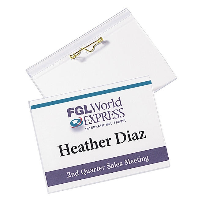 Create professional name tags quickly and easily from the convenience of your home or workplace with this pack of Avery customizable name badges with pins. Each ID badge holder features a no-snag pin to securely hold name tags in place, making them perfect for professional and social gatherings alike, including meetings, trade shows, company mixers, reunions, and more. The soft yet durable plastic badge holders are reusable, making them perfect for multi-day events like festivals, conventions, and tradeshows. The pocket-style design of the clear badge holders also makes loading and unloading cards and badge inserts simple and effortless. You can easily personalize your name badge inserts with Avery Design & Print Online. Our easy-to-use web-based software lets you import names, job titles, and company logos in no time.