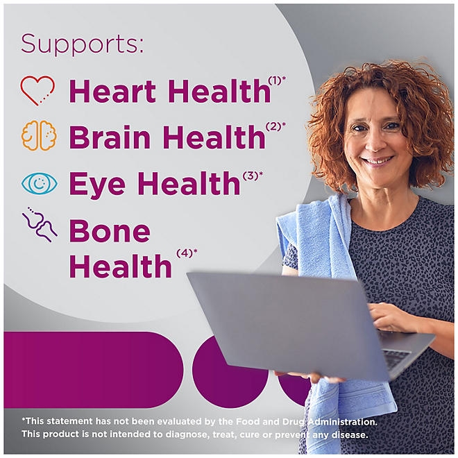 This women’s vitamin is enriched with iron and contains essential nutrients like vitamin D and calcium to support strong bones. It also includes B Vitamins, which are known to promote heart health. Please note, this supplement is not a replacement for cholesterol-lowering drugs.