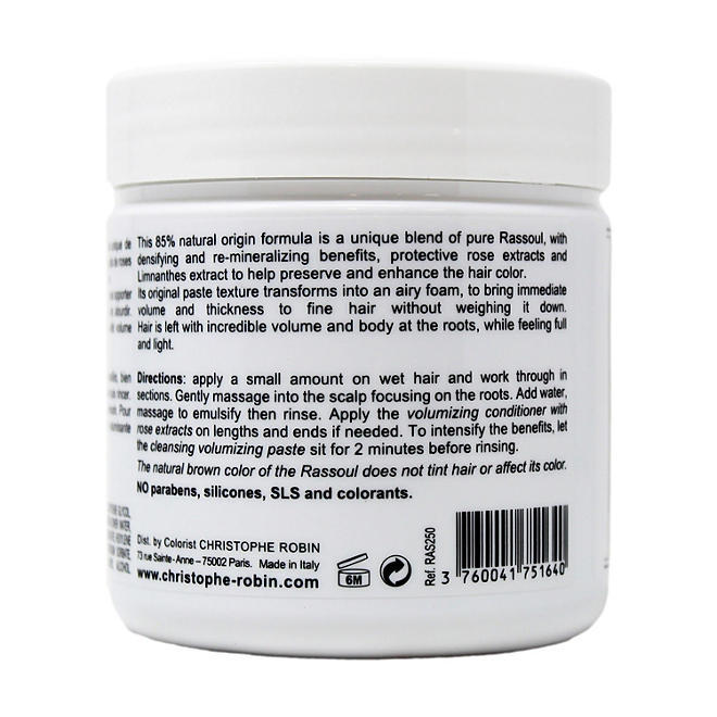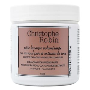 The perfect formula for fine hair, natural or colored, Christophe Robin Cleansing Volume Paste cleanses deep into the roots to protect color and add volume to thin hair.