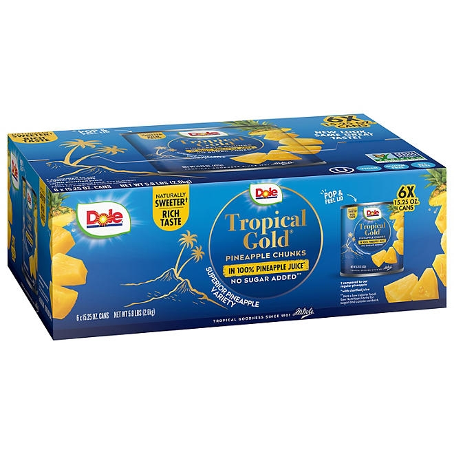 Dole Tropical Gold Pineapple Chunks, 15.25 oz., 6 pk.