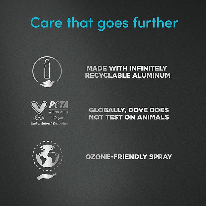 Committed to sustainability, the Dove Men+Care Clean Comfort Antiperspirant Deodorant Dry Spray can is made with infinitely recyclable aluminum. Moreover, all Dove products, including this antiperspirant deodorant dry spray, are PETA-certified cruelty-free. Dove is a brand that does not test on animals globally.