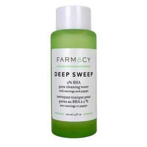 Introducing the Farmacy Deep Sweep Toner, an alcohol-free solution that offers gentle exfoliation while deeply cleansing your pores. This toner is enriched with 2% BHA, a component known for its ability to control oil without over-drying the skin. It’s a perfect choice for those who want to maintain a balanced and healthy skin complexion.