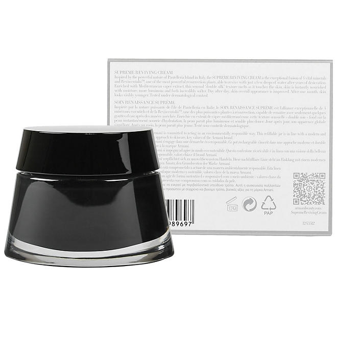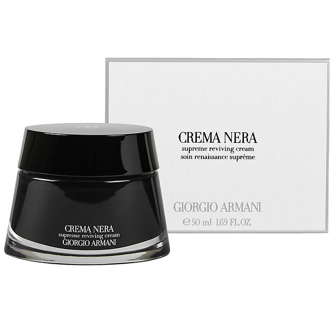The Giorgio Armani Crema Nera Supreme Reviving Cream provides complete anti-aging results. It works to increase skin’s firmness, combat wrinkles, refine skin texture, reduce the appearance of pores, and illuminate the skin.