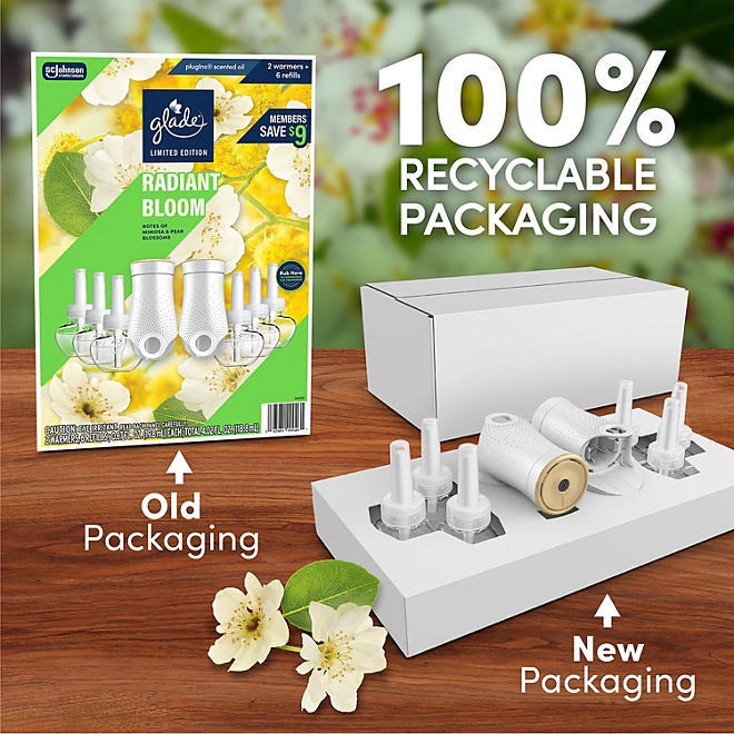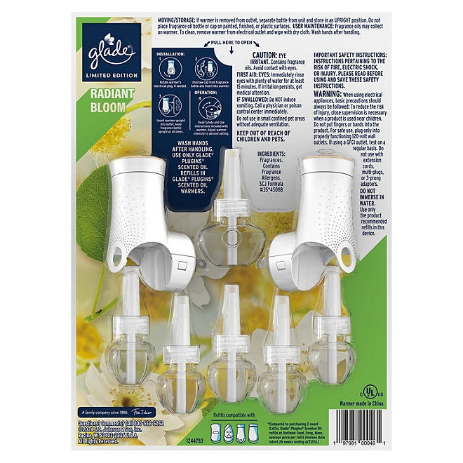 Glade PlugIns Scented Oil, Radiant Bloom, 2 Warmers + 6 Refills