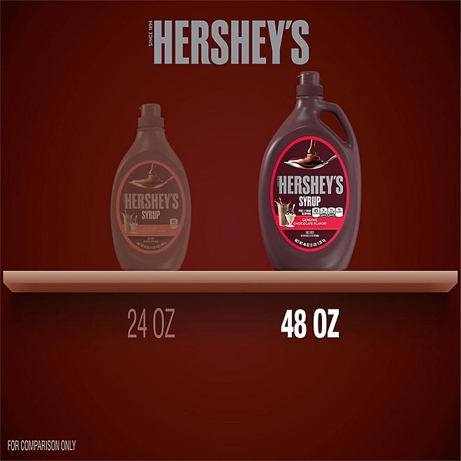 HERSHEY’S chocolate syrup is full of the genuine chocolate flavor you know and love packed in two convenient, squeezable bottles. Enjoy the sweet and delicious taste of chocolate flavored syrup on everything from cakes to cookies. It is the perfect syrup to add to your milk, hot cocoa and coffee. Try drizzling it over your brownies and cakes, or use it to make chocolate floats and sundaes. No matter what you’re making or who is at your gathering, pop open the lid and squeeze, swirl, dot or drizzle the syrup onto some of your favorite drinks and desserts. Squeeze the syrup onto your ice cream sundaes as a tasty topping or stir it into a cold glass of milk for a classic glass of chocolate milk. The syrup is also a great way to add a little sweetness to your morning coffee. HERSHEY’S chocolate syrup is great to have on hand for every holiday so that you’re always ready to create delicious treats and recipes for the entire family. This bulk chocolate syrup is fat free and has no artificial colors. It comes packaged in two closeable and squeezable syrup bottles for easy pouring. Once you’re finished, place the bottle in the refrigerator to keep the syrup fresh.