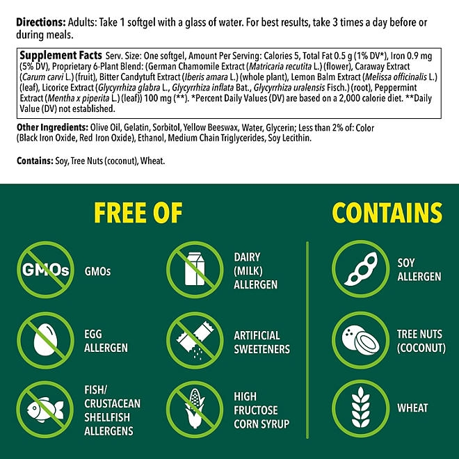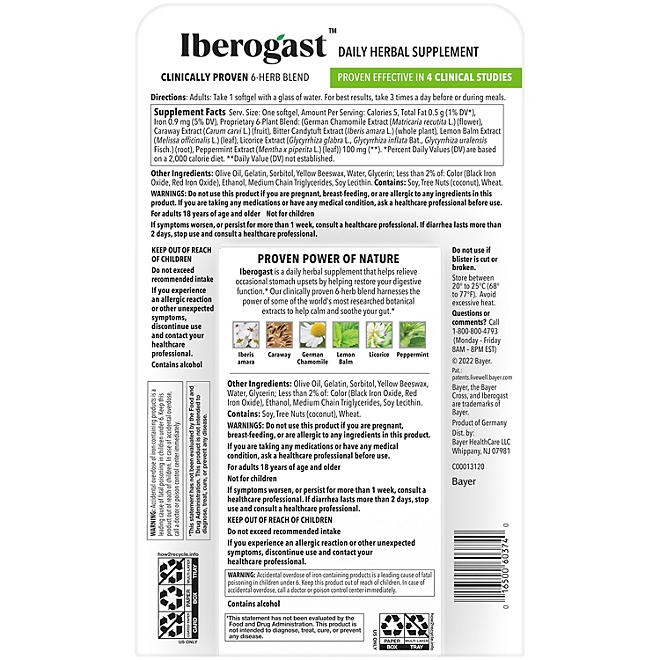 Iberogast Softgels is a daily herbal supplement that helps relieve occasional stomach upsets by helping restore digestive function with the power of our proprietary 6-herb blend.*