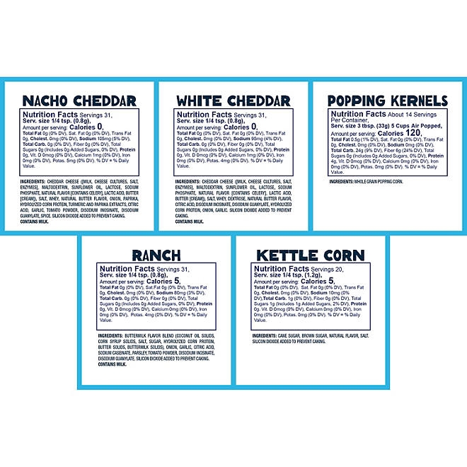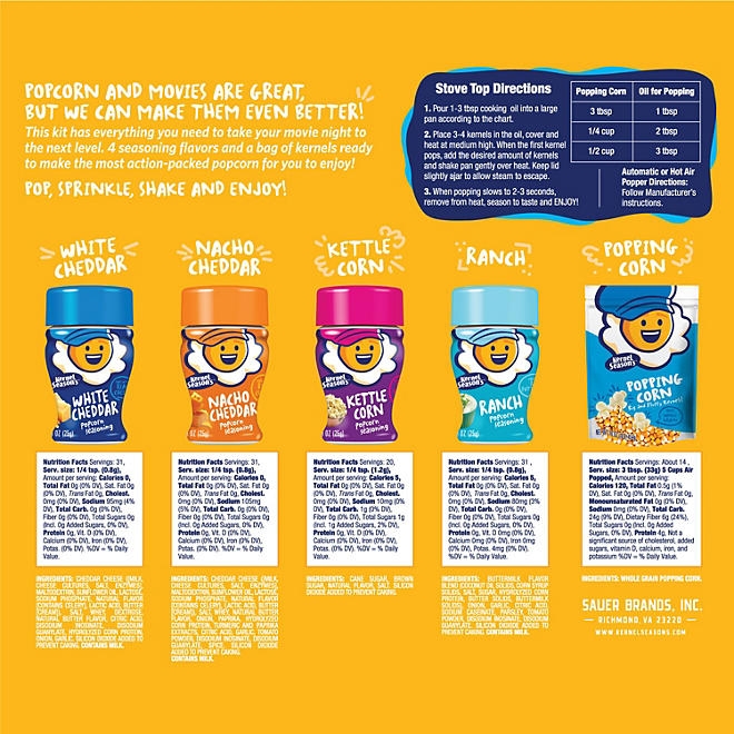 While in college, Brian Taylor was looking for a way to add some pop to his favorite snack, popcorn. He started mixing what would later become the original Kernel Season&rsquos recipe while living on campus at the University of Michigan. Brian teamed up with experienced flavor experts to perfect the recipes and began developing a seasoning line. Kernel Season&rsquos Popcorn Seasoning popped overseas in 2005, shaking up the flavor in grocery stores, movie theaters and millions of homes around the globe. Kernel Season&rsquos is the leader in the popcorn-seasoning category, with even more flavors and on-shelf innovation coming soon! America’s Number 1 Movie Theatre Popcorn Seasoning is all natural, gluten-free, made with 0g trans-fat, whole grains, real cheese, and Kosher dairy.