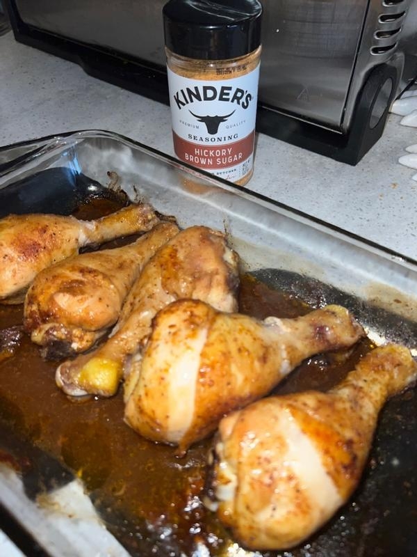 [This review was collected as part of a promotion.] This seasoning is the perfect balance of smokey and sweet. It’s delicious on all cuts of chicken. Take 6-7 chicken legs and marinate them in some Worcestershire sauce, avocado oil, and Kinder’s hickory brown sugar seasoning. Bake them in the oven at 425 for 45 minutes. They come out perfect every time.