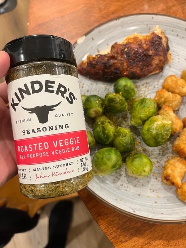 Transform your vegetables from simple sides to the star of the show with the all-new Kinder&rsquos Roasted Veggie seasoning. This unique blend of sea salt, garlic, herbs, lemon, spices, and a hint of chili is the secret to taking your veggies to the next level. Perfect for roasting a variety of vegetables, this versatile seasoning is also great for grilling or stovetop cooking. Try it on potatoes, cauliflower, squash, broccoli, or any veggies of your choice. Mix it with melted butter and brush it on corn or asparagus for an unforgettable flavor experience.