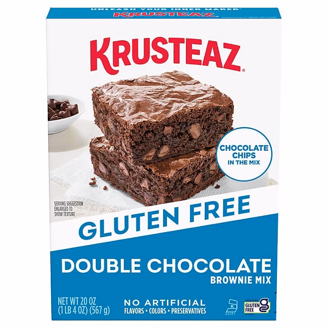 Experience the delight of a moist and rich fudgy brownie with real chocolate chips, now in a gluten-free version. Krusteaz Gluten Free Double Chocolate Brownies bring you all the great flavor of classic brownie mixes, but without the gluten. It’s the perfect treat for those who have dietary restrictions or simply prefer a gluten-free diet.
