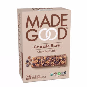 When it comes to feeding our kids and family, we want to give them the best. And now you can! MadeGood snacks are made with all the right ingredients so that your family can enjoy a better version of the snacks they already love. Take these chocolate chip granola bars out with you on impromptu hikes, after sports practice, to movie theater or with you to school or work. These are nut-free so kids can safely bring them to school.