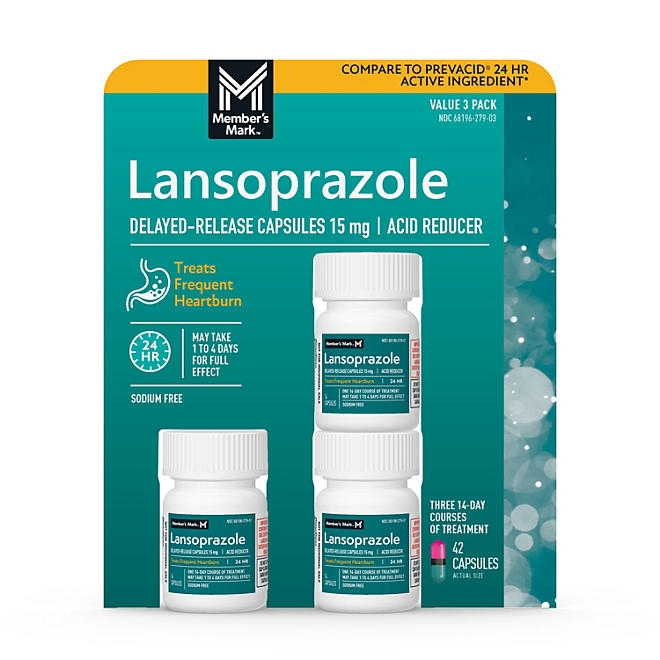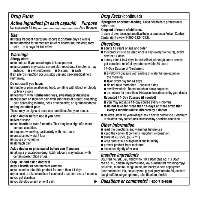 Comparable to the active ingredient of Prevacid 24 HR, Lansoprazole Delayed-Release Capsules 15 mg are a potent solution for your frequent heartburn issues. Frequent heartburn can occur at any time during the day or night, but with these capsules, you can take control. Simply take one in the morning before eating, and let the clinically proven active ingredient lansoprazole 15 mg work its magic.