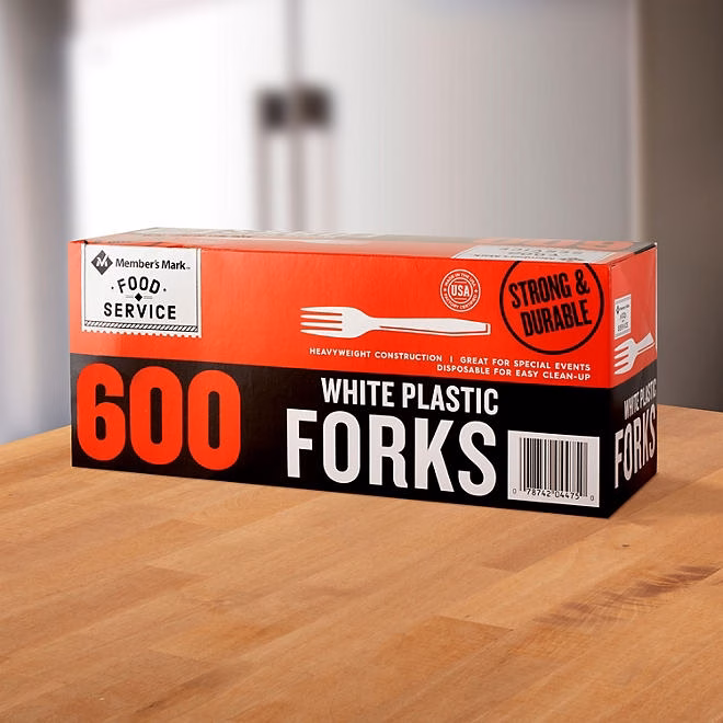 Packaged conveniently for foodservice professionals, the Member’s Mark® White Plastic Forks (600 ct.) are suitable for nearly any dining environment&mdashparties or events, takeout restaurants, kids’ lunch boxes, outdoor eating, road trips and much more.