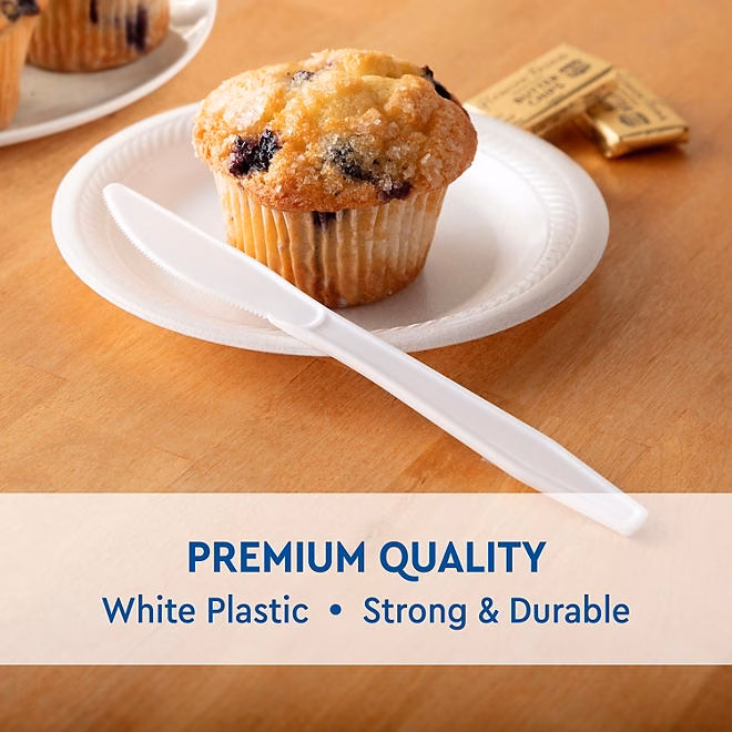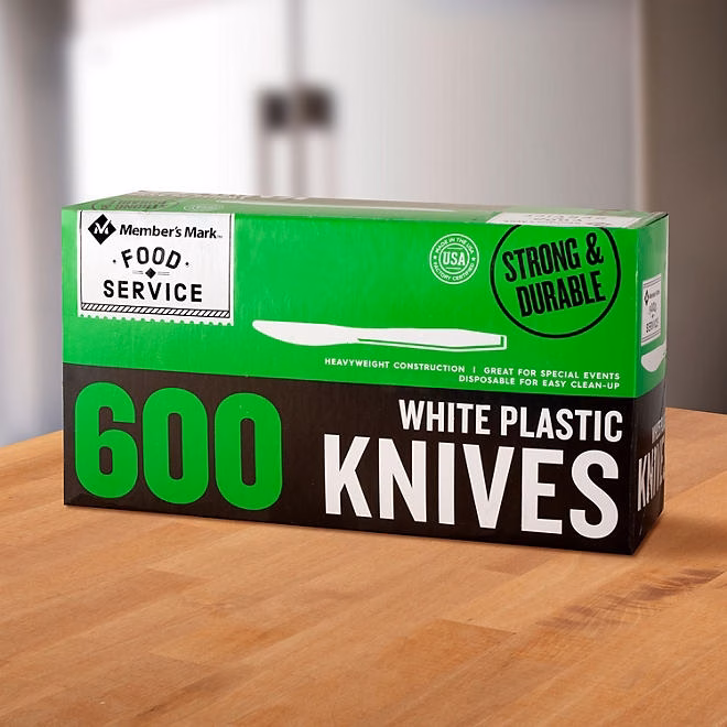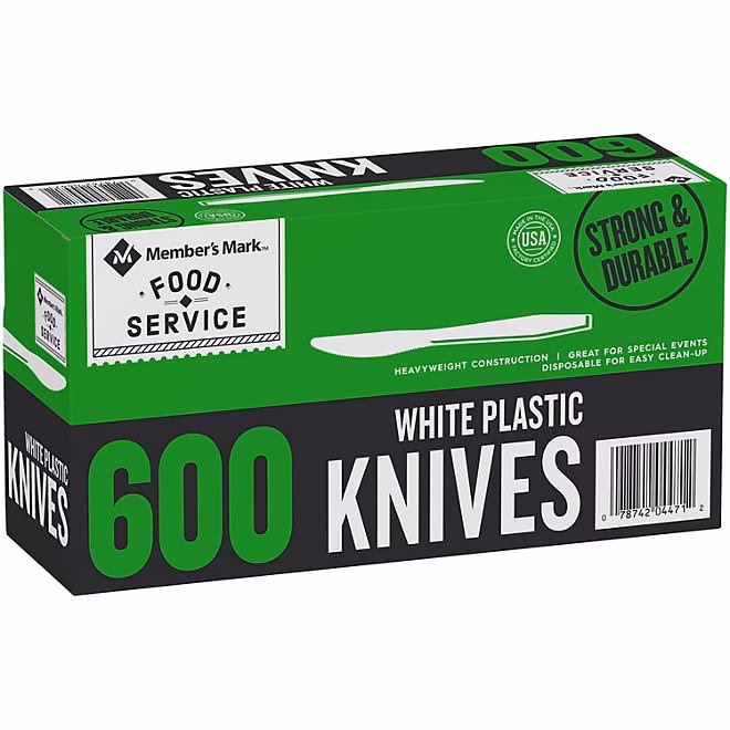 Member’s Mark&trade Plastic Knives, Heavyweight, White (600 ct.) are strong, reliable knives that you can count on at home, in the office or for any business that serves food. This 600-pack of heavy-duty plastic silverware will keep you stocked up and ready to serve hundreds of meals. Be sure to look for Member’s Mark heavyweight plastic spoons and forks as well.