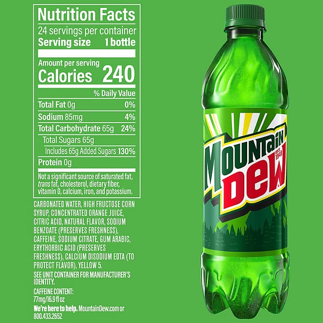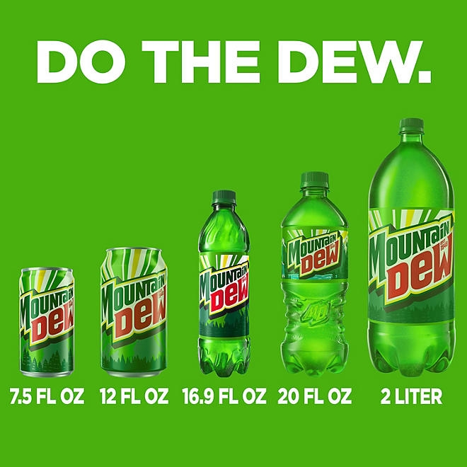 Mountain Dew, the original, the one that started it all. This exhilarating beverage quenches your thirst with its unique taste. Enjoy the crisp, bold lemon lime flavor that makes Mountain Dew a one-of-a-kind refreshment. It’s the perfect choice to bring a chuggable refreshment to your next party or gathering. Open a cold bottle of Mountain Dew and refresh your taste buds with its intense, chuggable refreshment.