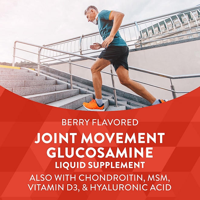 Experience the power of Nature’s Way Joint Movement Glucosamine, a fast-absorbing, berry-flavored liquid designed to support joint and cartilage, healthy bones, and muscle function. Each 2-tablespoon serving provides a potent combination of 2,000 mg of glucosamine, 1,200 mg of chondroitin, 500 mg of MSM, and 10 mg of hyaluronic acid. It also delivers 50% Daily Value of vitamin D3 for healthy bones and muscle function.