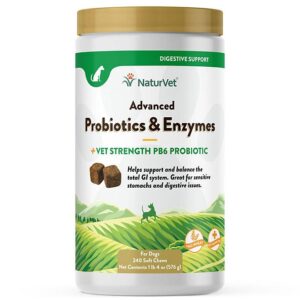 With NaturVet Advanced Probiotics & Enzymes Soft Chews, you&rsquore giving your dog a supplement that can improve both digestion and overall comfort. The probiotics introduce beneficial bacteria to the gut, while enzymes help break down food efficiently, supporting smoother digestion. As a result, your dog can experience less bloating and gas and improved nutrient absorption, which can lead to better energy levels and well-being.