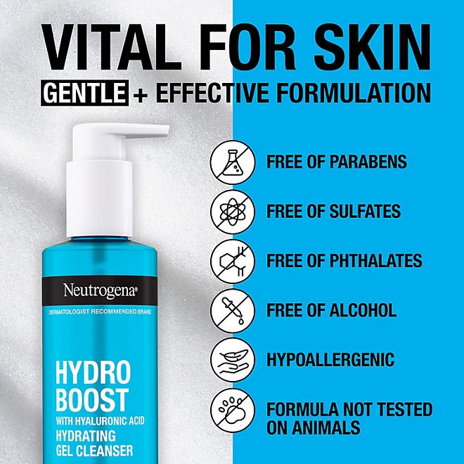 Boost skin’s hydration for soft, supple skin with Neutrogena Hydro Boost Hydrating Facial Gel Cleanser. This easy to apply, lightweight facial cleansing gel transforms into a silky lather that washes away dirt, oil, and bacteria and effectively lifts away makeup without stripping your skin. The lightweight formula leaves skin refreshingly clean and touchably supple.