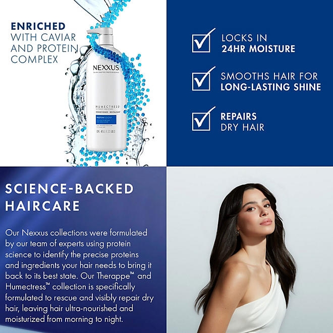 • Infused with Nexxus’s Proteinfusion blend of Elastin Protein and Green Caviar to revive dry hair and provide up to 24-hour moisture