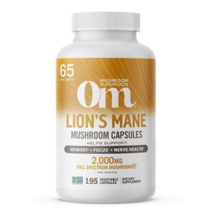 Om® Lion’s Mane Mushroom Powder stands out as it contains both the mycelium and fruiting bodies of the Lion’s Mane species. This unique blend ensures you get the maximum benefit from this smart mushroom. The mycelium is rich in neuroprotective compounds, while the fruiting bodies are packed with nootropic compounds, known to stimulate nerve growth factor (NGF) in the brain. &Dagger