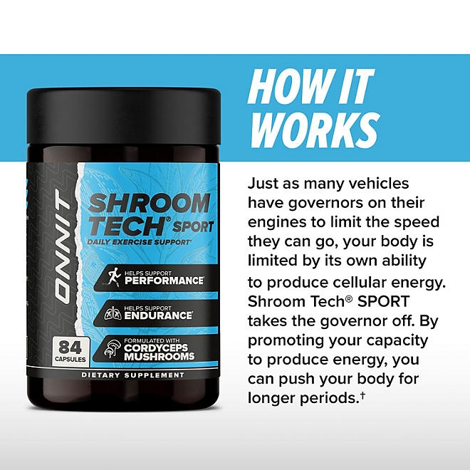 Elevated Energy: Shroom Tech® SPORT is designed to help you push your body further. Like removing the governor from a vehicle’s engine, this formula supports your body&rsquos ability to generate cellular energy&mdashso you can train longer, stronger, and with more intensity.&dagger   Performance-Centric Formula: Made with adaptogens like ashwagandha, cordyceps, and Rhodiola, it&rsquos crafted to support endurance and vitality for both casual gymgoers and competitive athletes.&dagger Use it pre-workout or as a daily energy boost.   Clinically Tested Support: In a 12-week double-blind, placebo-controlled clinical trial conducted at Florida State University, Shroom Tech® SPORT demonstrated statistically significant improvements in training volume during high-intensity cardio and strength sessions.&dagger   Quality You Can Trust: We source each ingredient with care and hold every batch to rigorous quality standards. Whether you&rsquore hitting the mats or logging miles, you can feel confident in what&rsquos fueling your body.&dagger   &daggerThese statements have not been evaluated by the Food and Drug Administration. This product is not intended to diagnose, treat, cure, or prevent any disease.