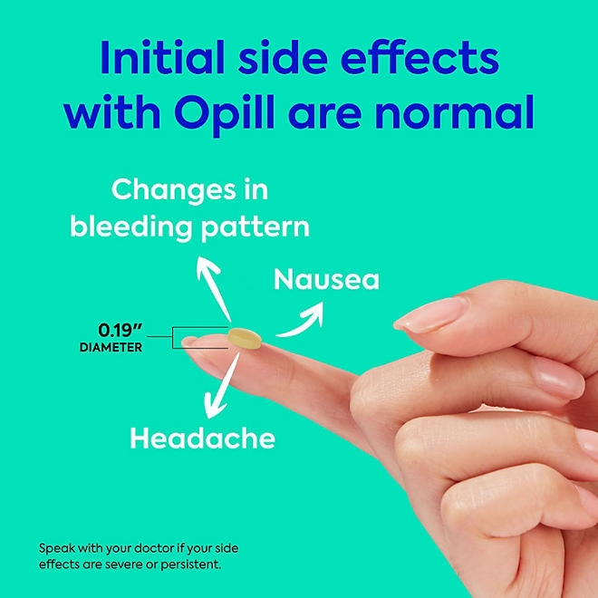 The best part? You don’t need a doctor’s appointment or a prescription before you begin using it, so it’s a great option for those without health insurance or frequent access to medical services. No prescription. No appointment. No hassle. To ensure optimal effectiveness, it is important to take Opill within the same 3-hour window each day. However, once you decide to discontinue its use, Opill does not delay your ability to conceive and become pregnant. Please read the leaflet when switching from another hormonal method of contraception. Opill is FDA approved.