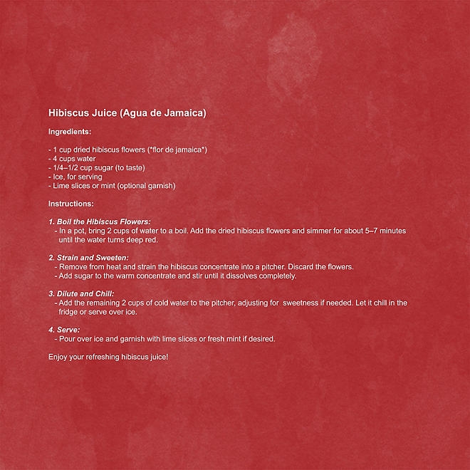 Want to try something new? Use these dried hibiscus flowers to create your own version of the traditional Mexican beverage – agua fresca. All you need to do is pair the flowers with ice and raw sugar. The result? A refreshing, sweet, and tangy drink that is perfect for those hot summer days.