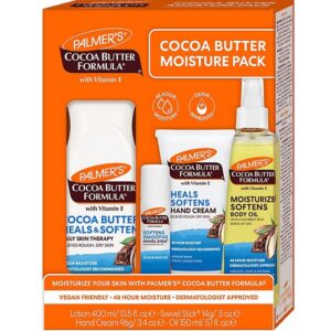 With Palmer&rsquos Cocoa Butter Formula Moisture Pack, every application becomes a moment of indulgence. From lightweight oils to rich creams, this collection ensures your skin stays silky-smooth, beautifully nourished, and radiant all day long.