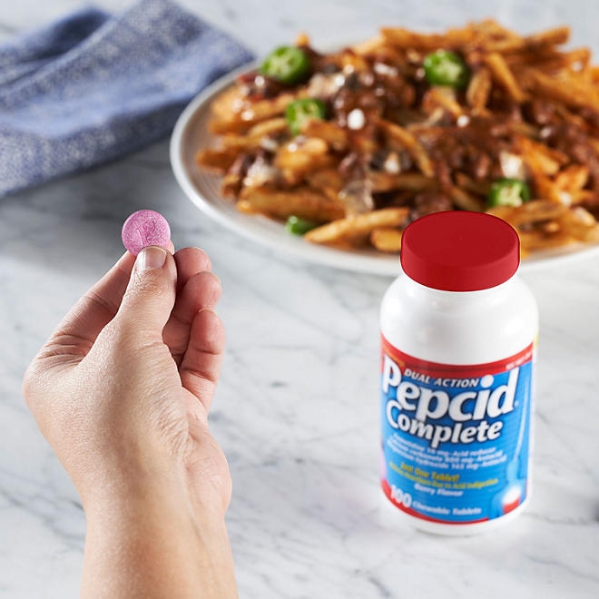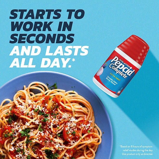 There’s no need to dissolve tablets in water or swallow uncomfortable pills to take Pepcid Complete. This product comes in easy, chewable tablets, so you can take them without water at home, on the go or in the office. So you won’t find yourself in a situation where you can’t get heartburn relief. Enjoy impromptu meals out with friends or dinner parties without worry.