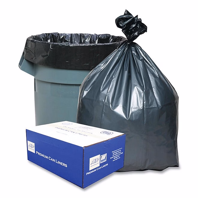 Platinum Plus Can Liners are made from a strong low-density resin blend designed for the toughest uses. It has superior puncture-resistant sidewall strength and a star-bottom seal construction that distributes weight more evenly and resists leaks. Coreless rolls for convenient dispensing. Gray color hides unsightly trash.