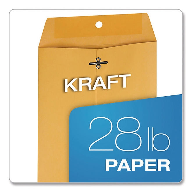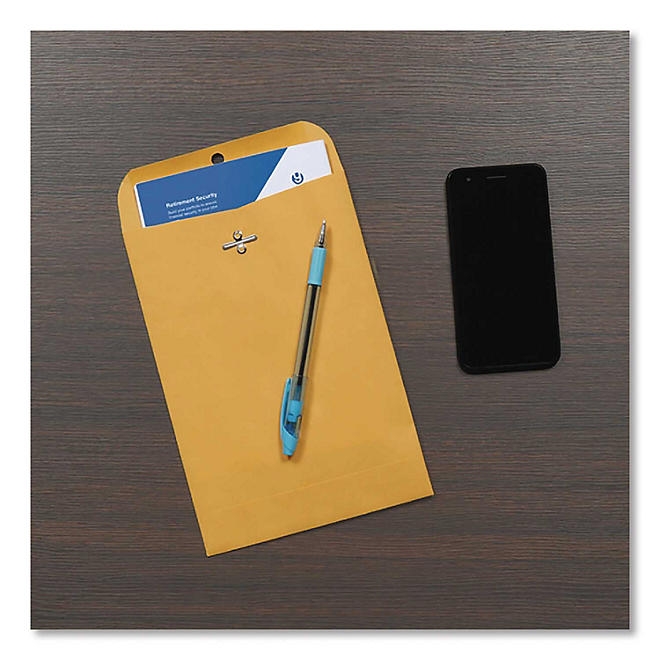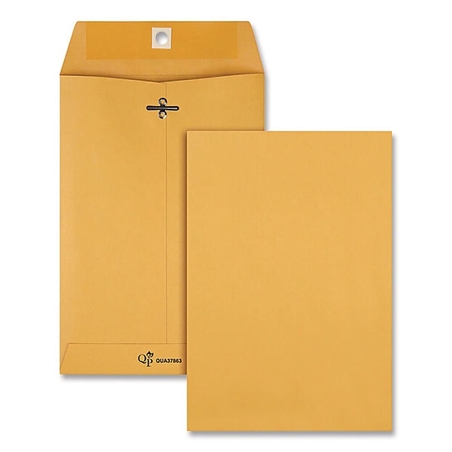 Reusable envelope is ideal for office, school and home use. Durable double prong metal clasp and reinforced eyelet. Heavily gummed flap closure.