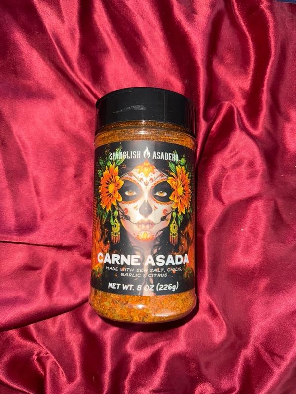 • Spanglish Asadero’s Carne Asada seasoning is an authentic blend of spice, citrus, garlic, herbs and spices, sea salt and chili