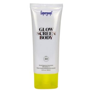 Introducing the Supergoop Glowscreen Body lotion – a product designed to mirror the benefits of the top-selling Glowscreen facial formula. This illuminating lotion not only moisturizes your skin but also adds a bright and healthy-looking glow. It is formulated with light-reflecting minerals that give your skin a warm shimmer, enhancing your body’s natural radiance.