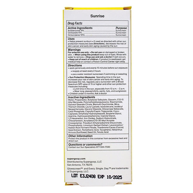 Supergoop Glowscreen is packed with SPF protection, shielding your skin from harmful UVA and UVB rays. It is your skin’s defense against the sun’s damaging effects, keeping your skin safe while you enjoy that beautiful glow.