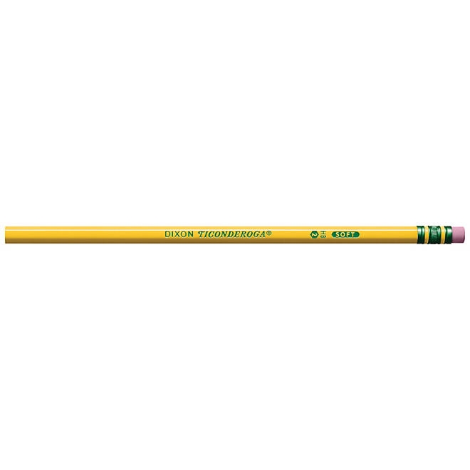 Dixon Ticonderoga pencils have exclusive graphite formula writing cores that are made from a combination of graphite and clay. The ratio of graphite to clay determines how dark or light the mark of the pencil will be based on how hard or soft the writing core is. In America, Ticonderoga pencils are placed in one of 5 categories: 1 &ndash extra soft, 2 &ndash soft, 2.5 &ndash medium, 3 &ndash hard, and 4 &ndash extra hard. The pencil cores with the highest graphite content are the softest, leave the darkest marks and are labeled #1’s. Conversely, the cores with the lowest graphite content are the hardest, leave the faintest marks and are labeled #4’s.