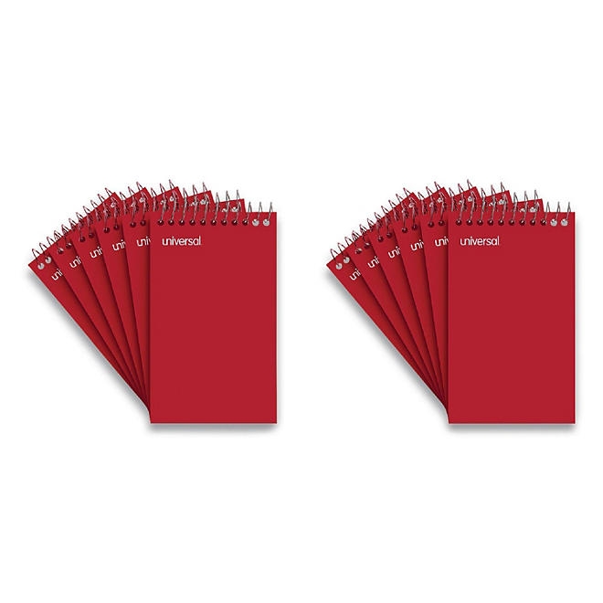 Universal Wirebound Memo Book, Narrow Rule, 3 x 5, White, 50 Sheets, 12/Pack