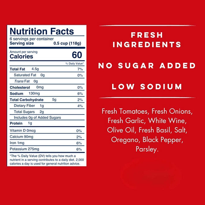 • Marinara pasta sauce cooked in small batches to preserve taste and freshness