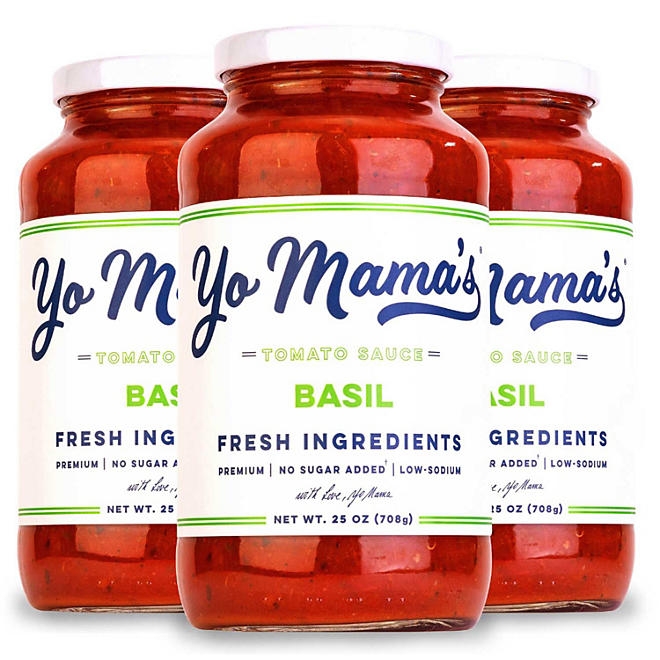 Yo Mama’s Foods Low-Sodium Pasta Sauce, Tomato Basil, 25 oz., 3 pk.