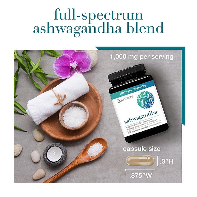 Powered by KSM-66 Youtheory organic ashwagandha capsules are a potent blend of the adaptogenic powers of Indian ginseng. KSM-66 is derived from the roots of Withania Somnifera, the same botanical used for centuries in the Ayurvedic tradition.   Boosts Mental and Physical Performance Ashwagandha capsules can help to enhance your mental and physical performance, for peak efficiency and endurance. KSM-66 helps reduce fatigue and boosts energy levels so that you can power through your day with renewed vigor. These capsules can also heighten cognitive acuity and awareness while promoting a sense of calmness, clarity and inner peace. *These statements have not been evaluated by the Food and Drug Administration. This product is not intended to diagnose, treat, cure or prevent any disease.
